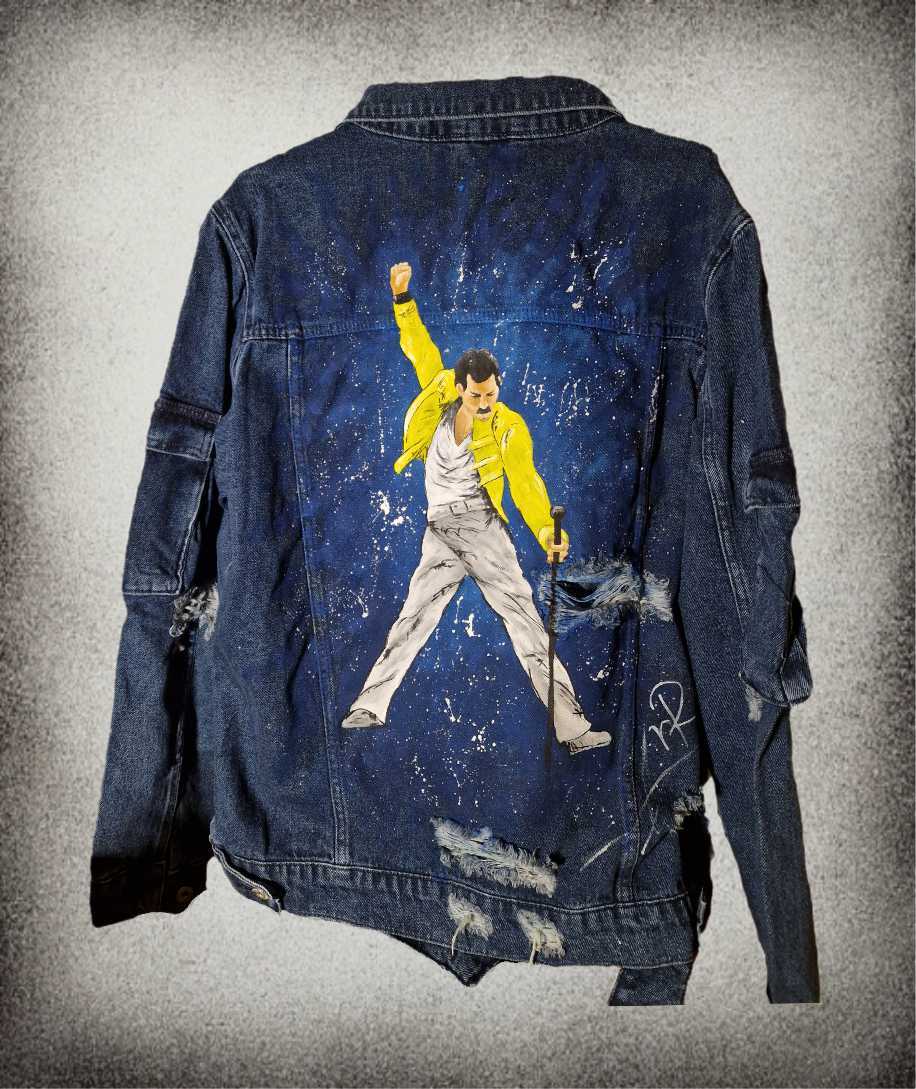 Freddie Mercury ręcznie malowany portret artysty na katanie.